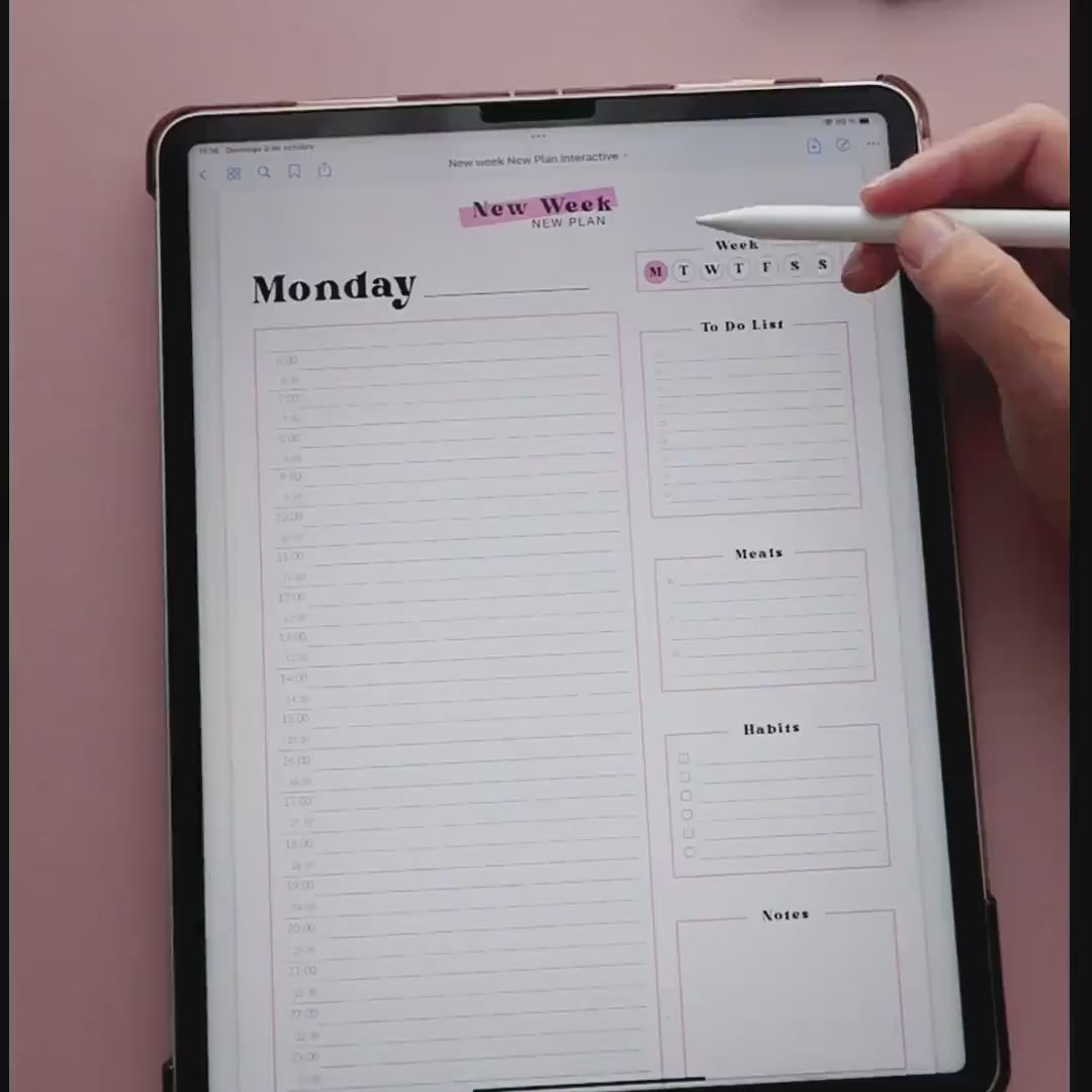 Daily & Weekly Hyperlinked Hourly Digital Planner to organize your days.
